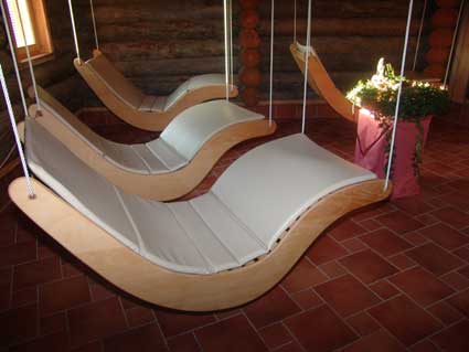 die schwebenden saunaliegen werden für jeden kunden individuell gefertigt.